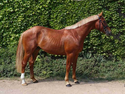 Otec - plnokrevný hřebec 3015 DAMON byl velmi úspěšným a houževnatým sportovcem, což dokazují jeho výsledky. Za svoji desetiletou sportovní kariéru startoval ve 41 soutěžích ve všestrannosti na národních kolbištích, kde inkasoval 15 vítězství, 9 druhých, 5 třetích, 3 čtvrtá a 2 pátá místa. Všechny soutěže dokončil a dosáhl stupně „T“. Zvítězil nejen v řadě kvalifikací, ale především ve finále Nadějí, finále Stříbrné podkovy, je trojnásobným vítězem Zlaté podkovy. Je Mistrem republiky ve všestrannosti 2010, kde získal ještě dvakrát druhé místo. Damon je vítězem KMK (Kritérium mladých koní) ve všestrannosti pětiletých i šestiletých koní.